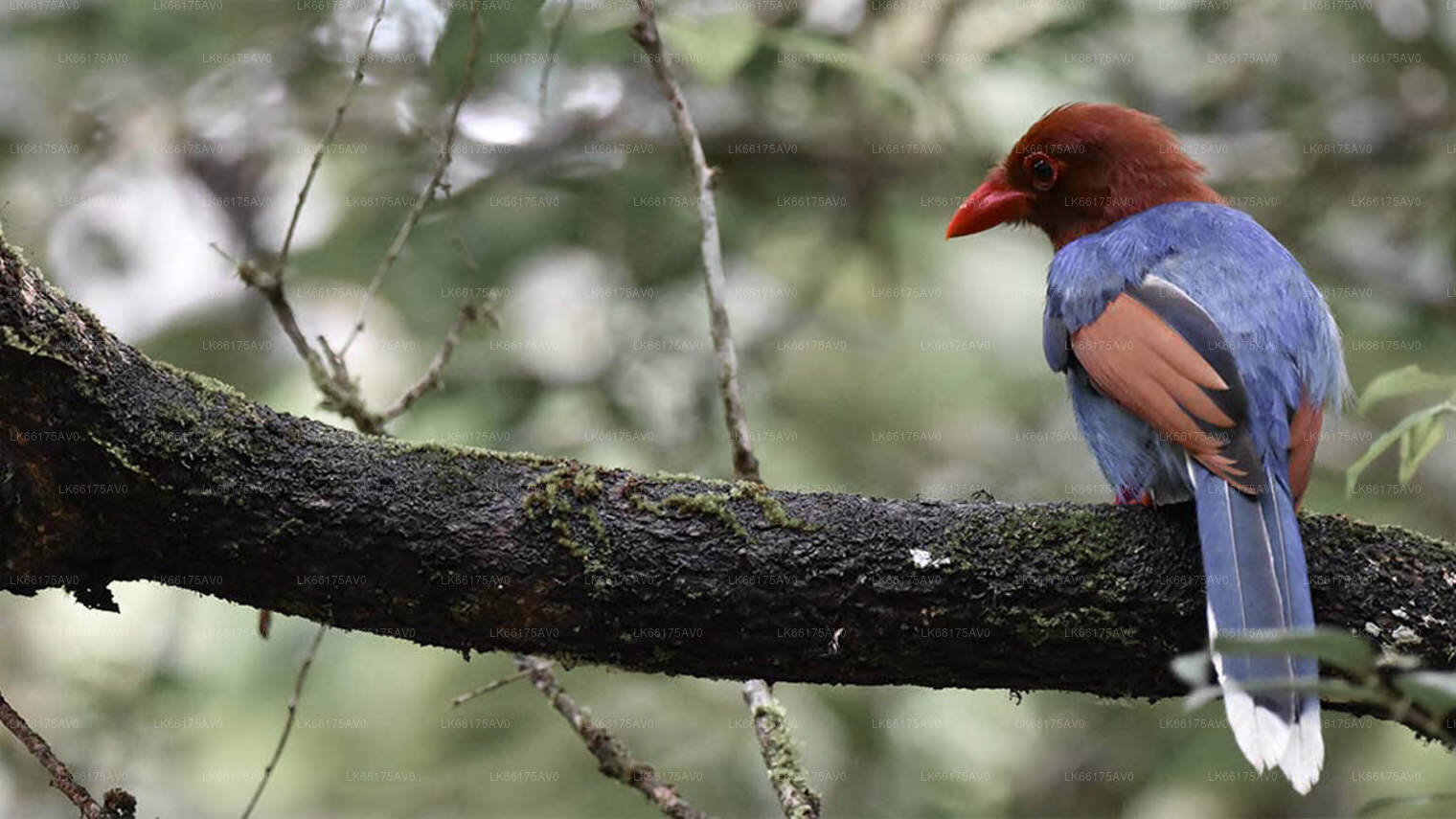 Birds: Green-Billed Coucal, Red-Faced Malkoha, Ceylon Blue Magpie, Rufous Babbler, Ceylon Hill Mynah, Ashy-Headed Laughingthrush, Whit
