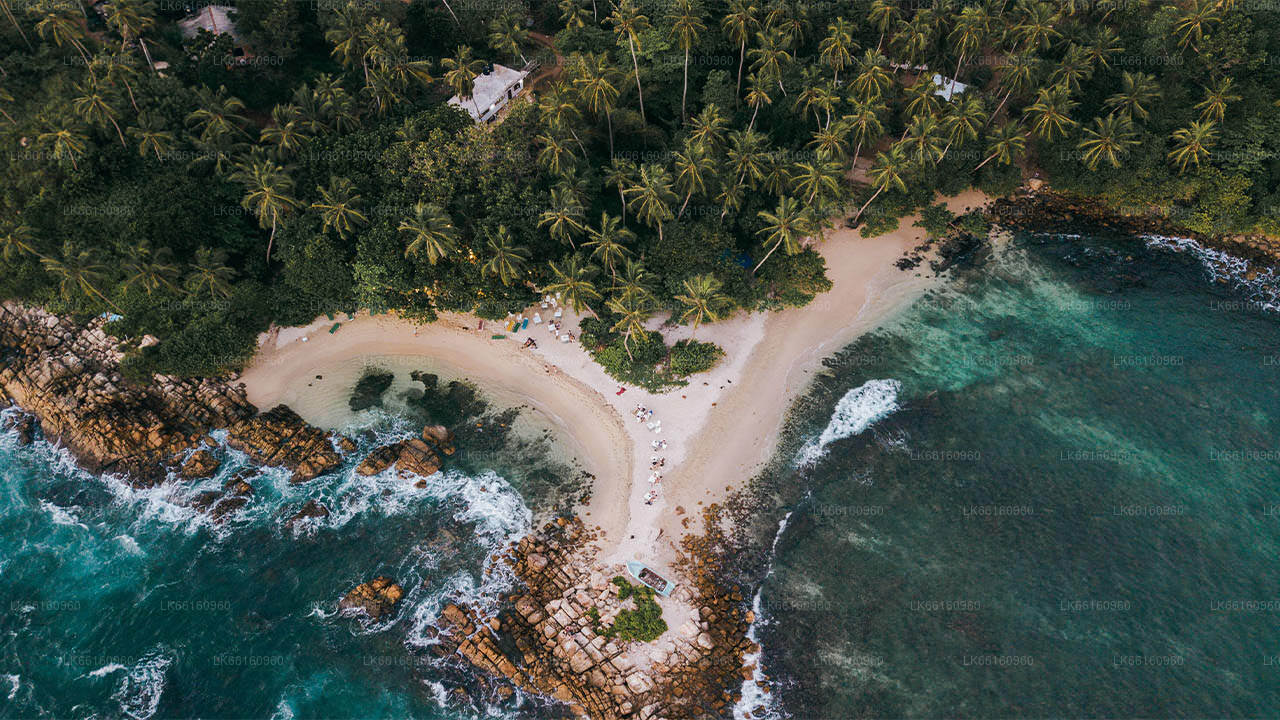 Mirissa, a picture-perfect bay beach in the Southern coastal belt of Sri Lanka is located 146km south of Colombo. Mirissa can be reached by Colombo-Galle-Hambantota motor road as well as by Colombo-Galle-Matara southern coastal railway too. A couple of kilometers beyond the lovely beach of Weligama, almost hidden from the dense groves of coconut palm trees that fringe the bay lies the loveliest beach Mirissa. It's the beach to swim, snorkel, sport fishing, sea kayaking, cruises around the bay and other water sports.