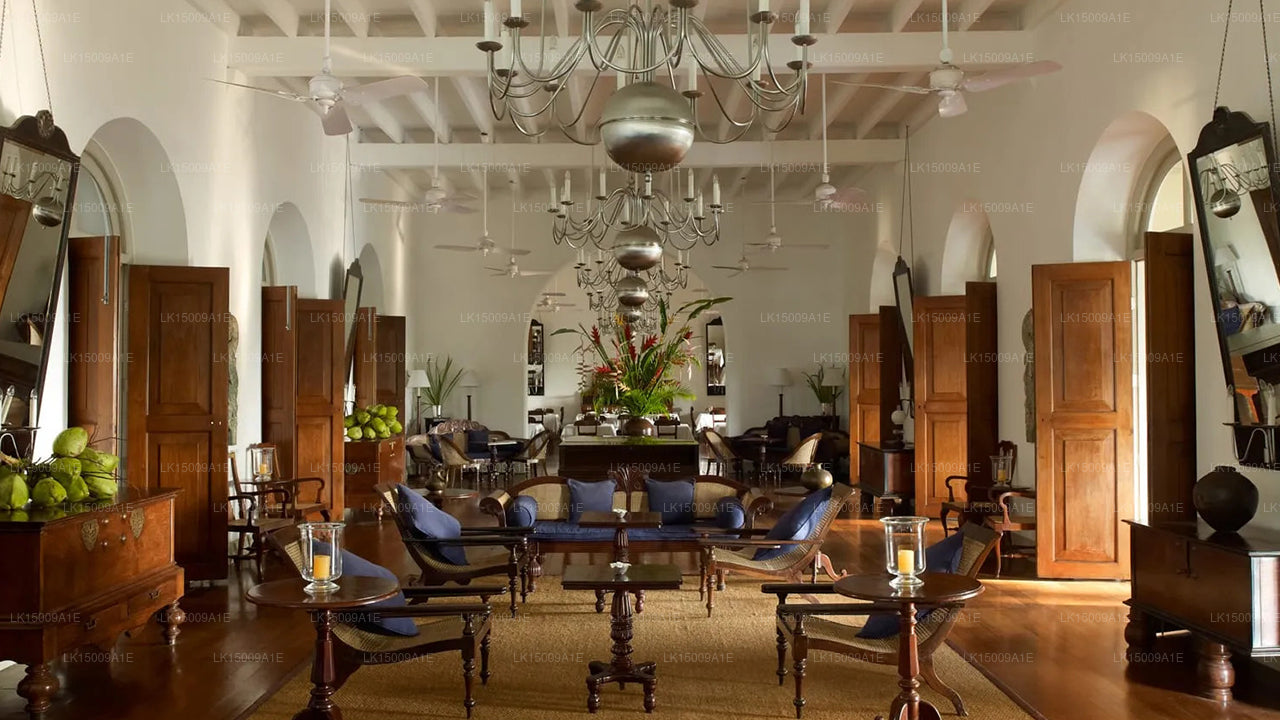 (SKU: LK15009A1E) Nestled within the Dutch Fort in Galle which is famous as a UNESCO World Heritage Site, Amangalla is housed in a historic colonial building which was formerly known as the New Oriental Hotel. Offering bedrooms, chambers, suites and a garden house, the resort reflects the by gone era magnificently with its unique colonial settings and antique furniture. From Spa facilities to warm meals the resort provides a tranquil atmosphere where guests can relax and even meditate without any disturbance from the bustling city of Galle.