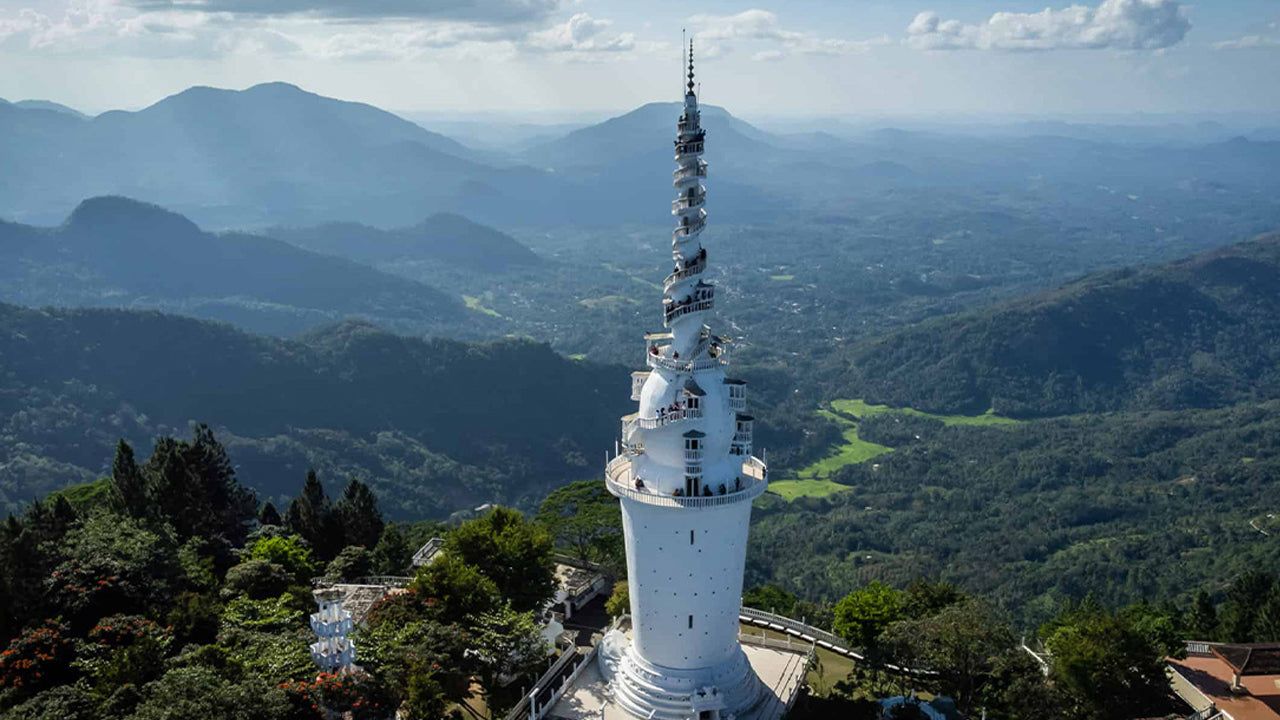 The Ambuluwawa Tower, perched atop Ambuluwawa Peak near Kandy, Sri Lanka, is a stunning architectural marvel set amidst a diverse biodiversity complex. This spiraling tower reaches skyward, offering a thrilling climb of 1,000 steps that rewards visitors with sweeping, panoramic views of lush landscapes and distant mountains. Originally part of the Gampola Kingdom under King Buwanekabahu IV in the 13th century, the tower now stands as a testament to Sri Lanka's rich history and natural beauty. The site is accessible to all, with reasonable ticket prices, making it an unforgettable destination for adventurers and nature lovers alike.