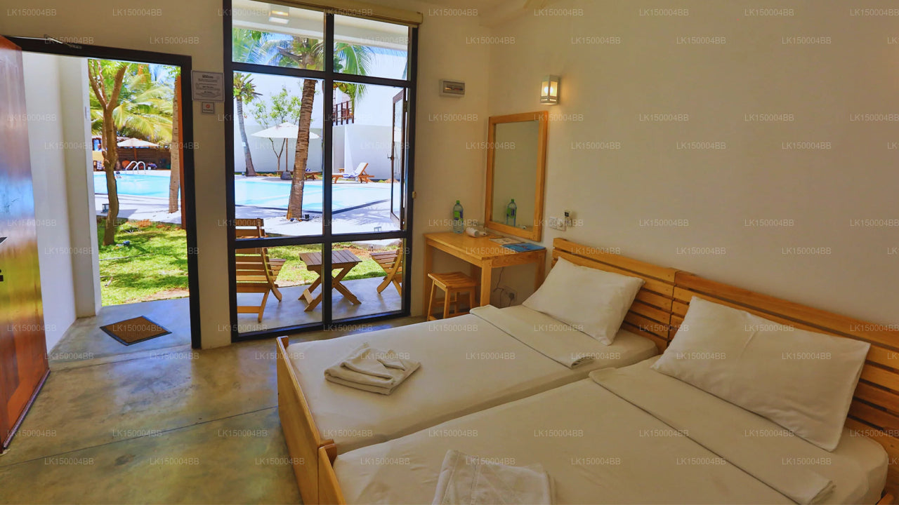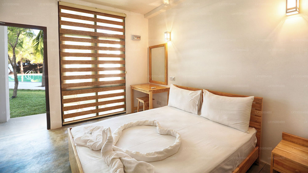 Situated directly on the sandy shores of Arugam Bay, the property provides immediate access to the beach and is within close reach of popular surf spots, local cafés, and boutique shops. Its central location allows guests to enjoy both surf culture and coastal relaxation.