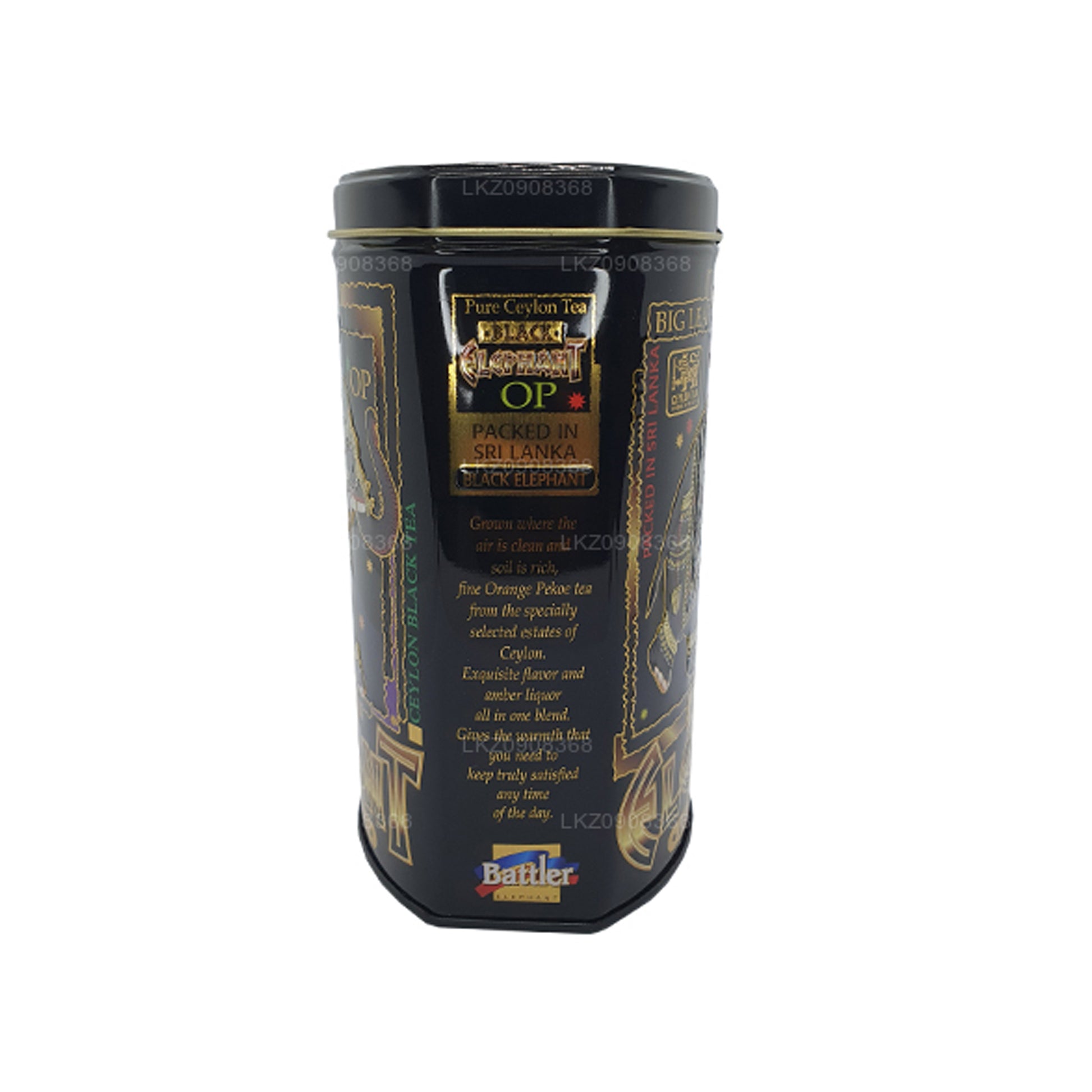 Battler Black Elephant OP Caddy embodies strength and elegance, offering a premium Ceylon tea experience. Encased in a sleek tin caddy featuring the striking silhouette of a black elephant, this tea commands attention with its bold presentation and flavor. Sourced from the finest tea gardens in Sri Lanka, the leaves are carefully selected to ensure exceptional quality and flavor. With rich malt notes and a subtle sweetness, each sip offers a luxurious, full-bodied experience. Ideal for the discerning tea enthusiast, the Battler Black Elephant Tin Caddy celebrates the timeless craftsmanship of Sri Lankan tea, making it a perfect choice for both personal enjoyment or sharing with guests.