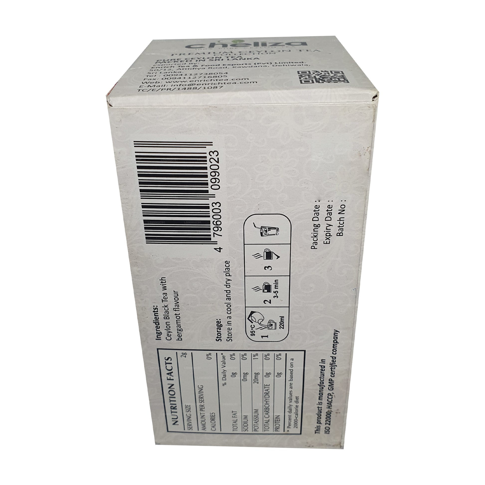 Cheliza Ceylon Earl Grey Tea with Bergamot Flavour (50g) 25 Tea Bags