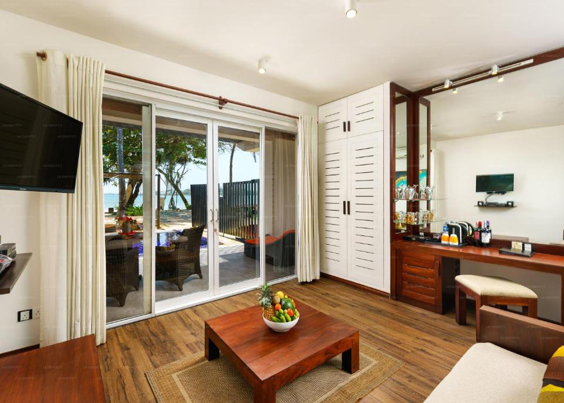 Accommodation:The rooms and suites at Cocobay Unawatuna are elegantly furnished with artworks and wood flooring. Each air-conditioned room features a flat-screen satellite TV, minibar, tea/coffee facilities, telephone, and a safe. The Aqua Romance rooms also come with private plunge pools. The private bathrooms are equipped with a spa bath, rain shower, bathrobes, and slippers. Guests can enjoy amenities such as a fruit basket upon arrival, a pillow menu, and complimentary Wi-Fi.