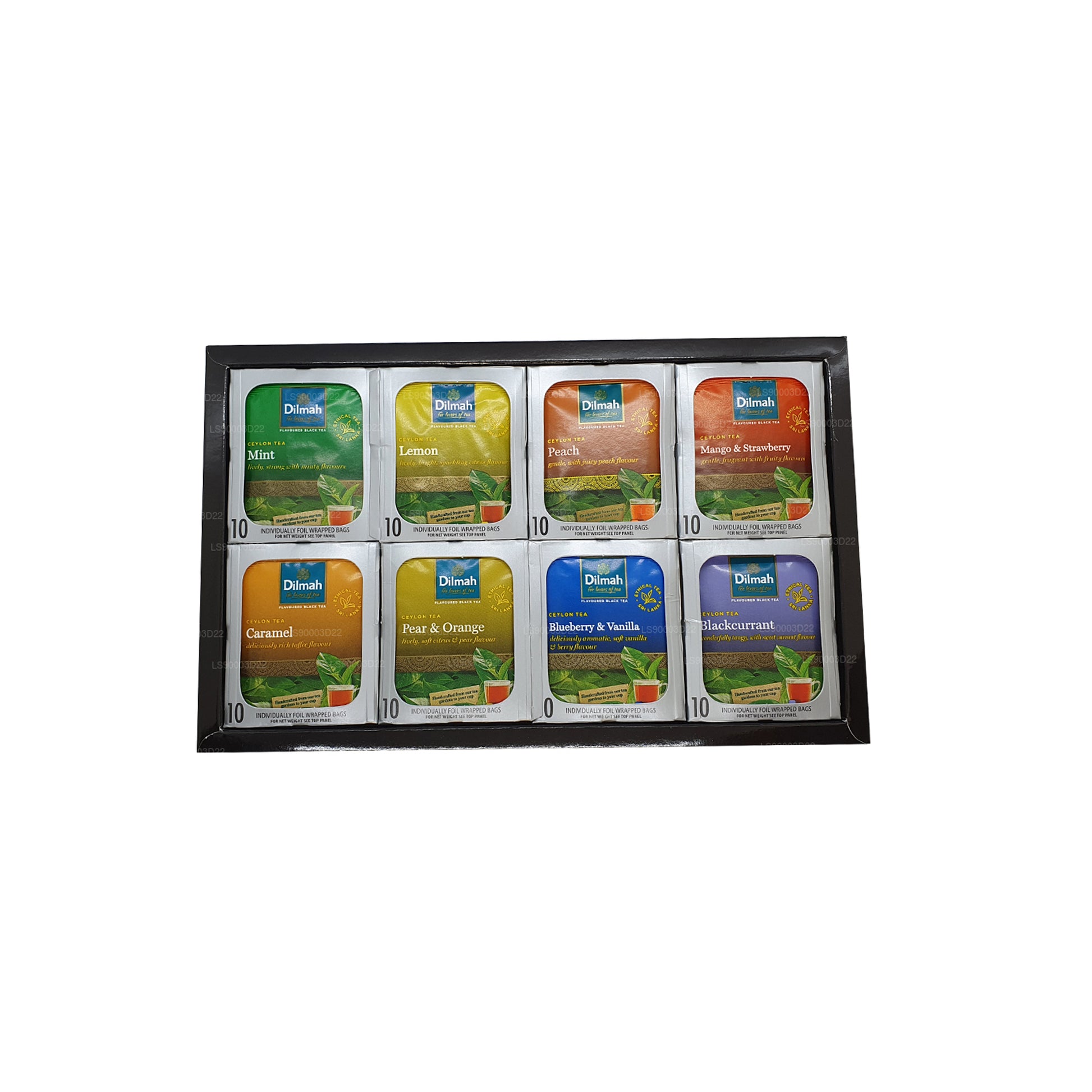 Teas that are guaranteed to enliven, refresh and excite. Taken hot or taken iced, these are genuinely fun teas. Delicate and medium bodied Ceylon Tea with a touch of flavour. Caramel, Peach, Mint, Lemon, Blueberry & Vanilla, Blackcurrant, Pear & Orange and Mango & Strawberry. Ten individually foil wrapped teabags each of eight flavours. Tea with a definite twist! The perfect introduction to an exciting alternative to normal tea. Dilmah Fun Teas are great taken hot, or iced. Maybe even with a dash of your favourite liquor. Aromatic, and deliciously full of flavour.