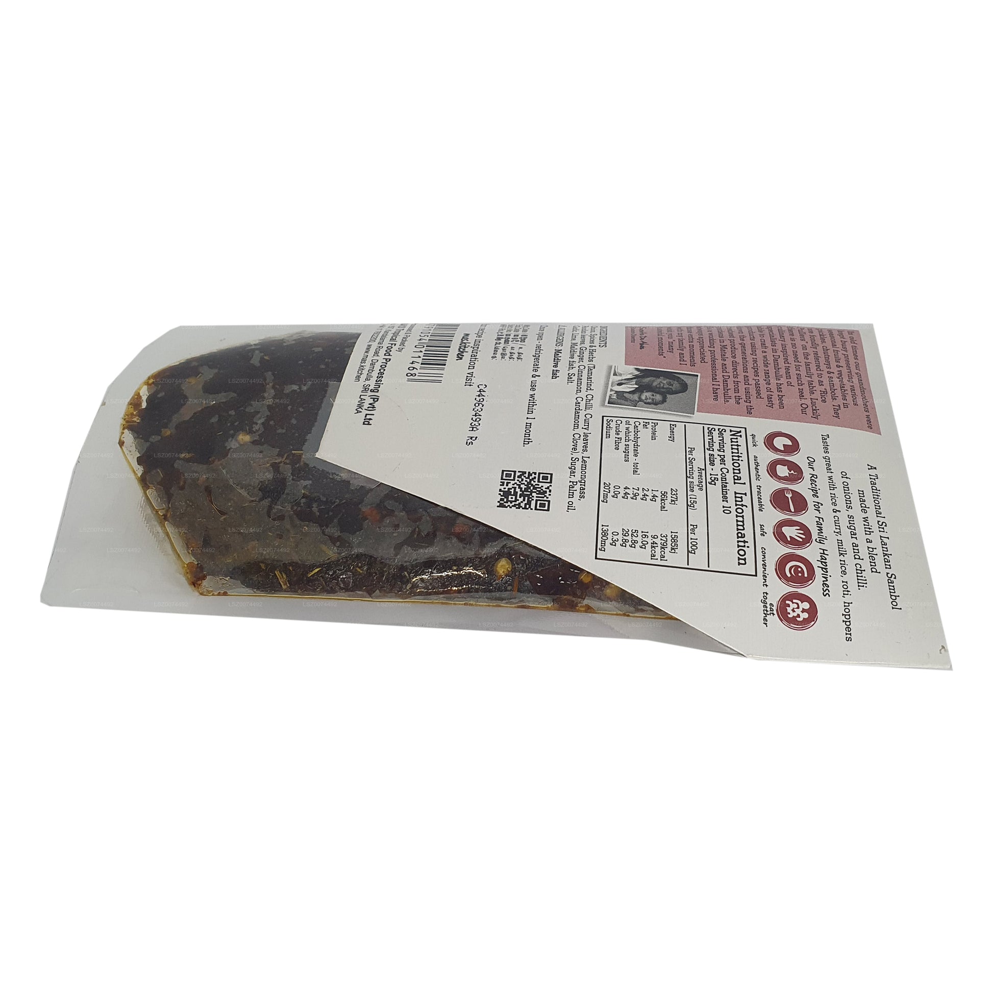 (SKU: LSZ0074492) MA's Kitchen Happy Home Fried Seeni Sambal (150g) is a culinary delight that brings together aromatic spices, caramelized onions, and a hint of sweetness. Crafted with care and expertise, this versatile sambal can be used as a condiment, cooking ingredient, or dipping sauce. Its authentic flavors pay homage to Southeast Asian culinary culture, creating a symphony of sensations with every spoonful. Made with natural ingredients and a commitment to tradition, MA's Kitchen Happy Home Fried Seeni Sambal is not just a condiment – it's a journey through authentic flavors that adds joy and nostalgia to every meal.