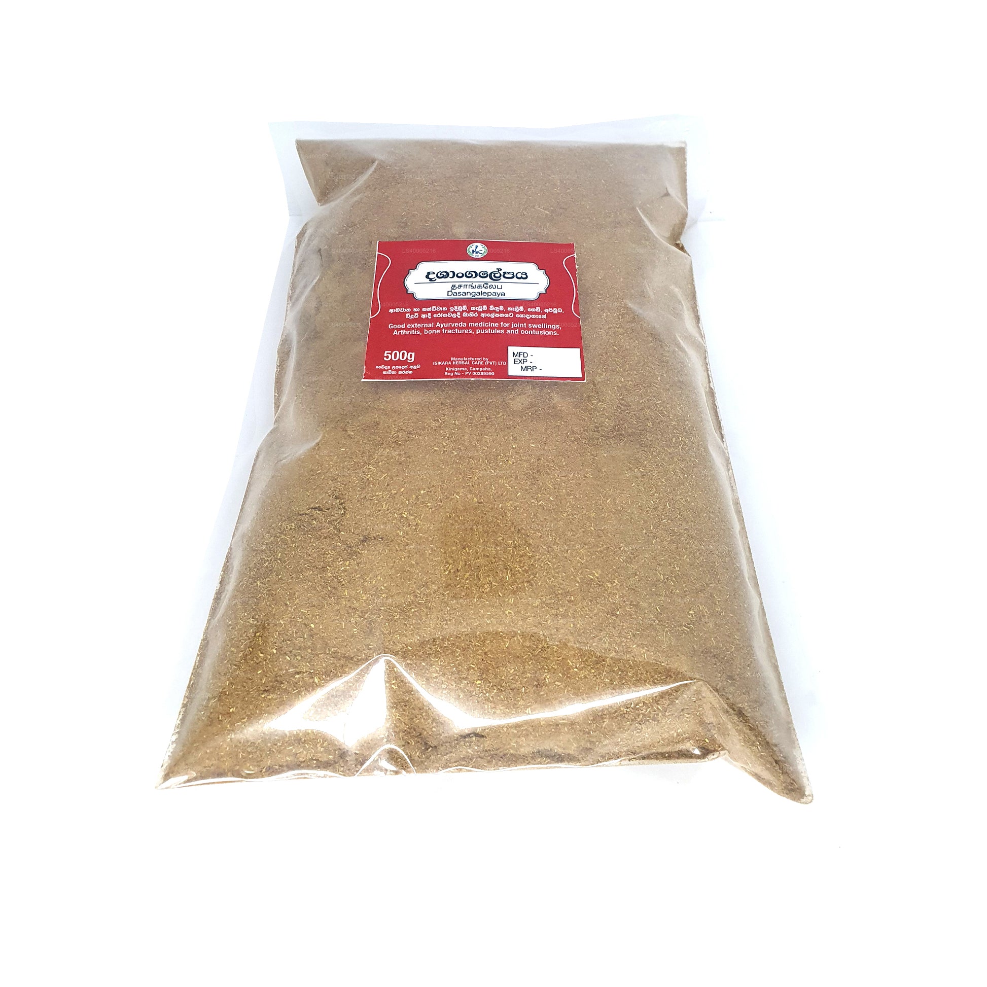 Isikara Dasangalepa churnaya, also known as Dashang Lepa Churna, is an Ayurvedic herbal paste designed for external use only. It is primarily used to treat herpes wounds, skin diseases, fever, and inflammation. The dosage is sufficient quantity required for topical application or as directed by a physician. This herbal remedy contains a blend of traditional herbs known for their therapeutic properties in Ayurveda.