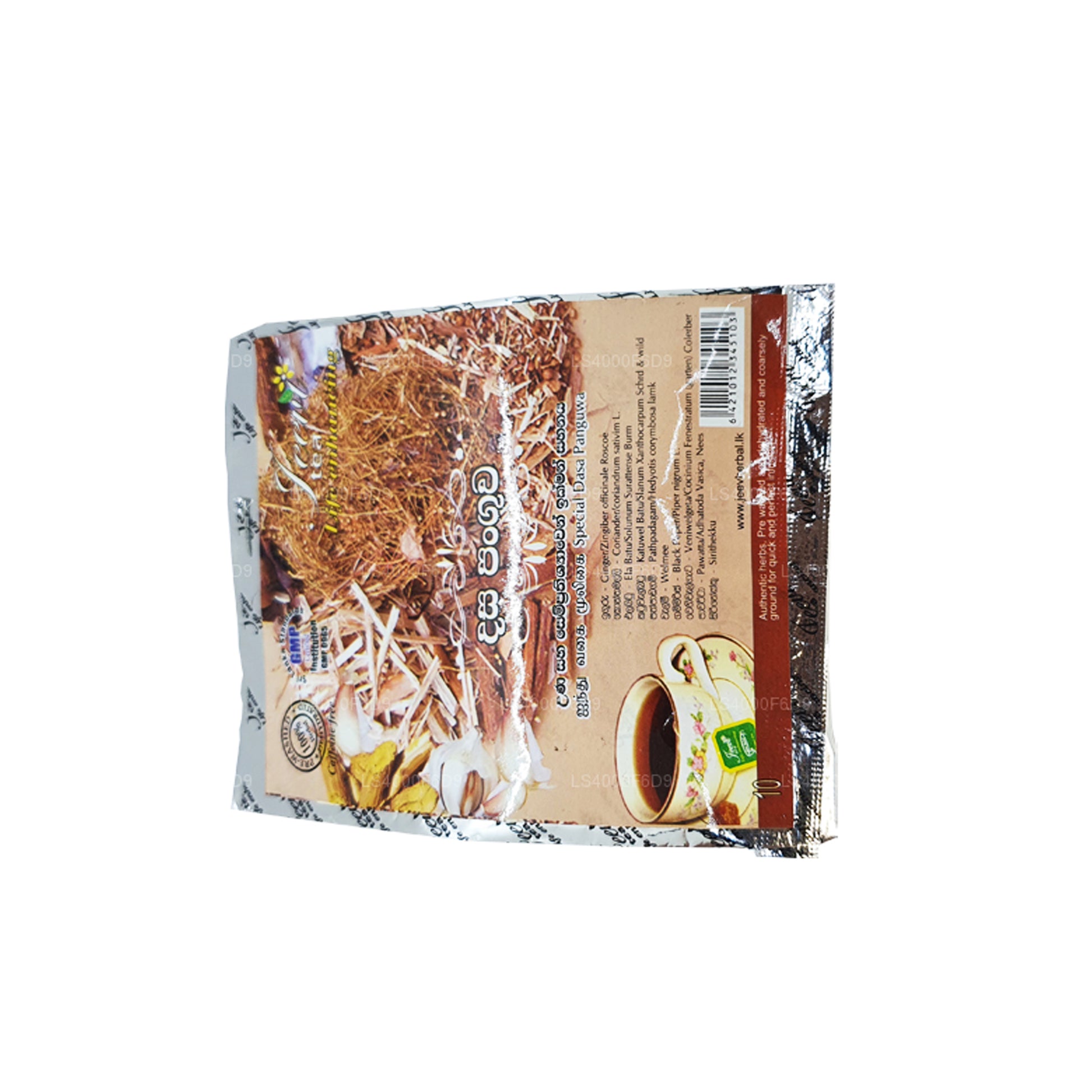 (SKU: LS4000F6D9) "Jeevi Dasapanguwa - Ten Mix" is a herbal blend from Sri Lanka, containing ten different herbs traditionally used in Ayurvedic medicine. It is believed to offer digestive, detoxifying, and immune-boosting benefits and is typically consumed as a tea or decoction. While valued in traditional practices, it's advisable to consult a healthcare professional before use.