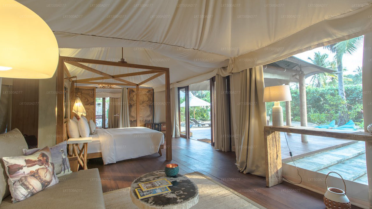With spacious tented suites situated directly on the beach or nestled in their own private gardens, the resort aims to provide low-density living with a light footprint in a lush tropical setting.