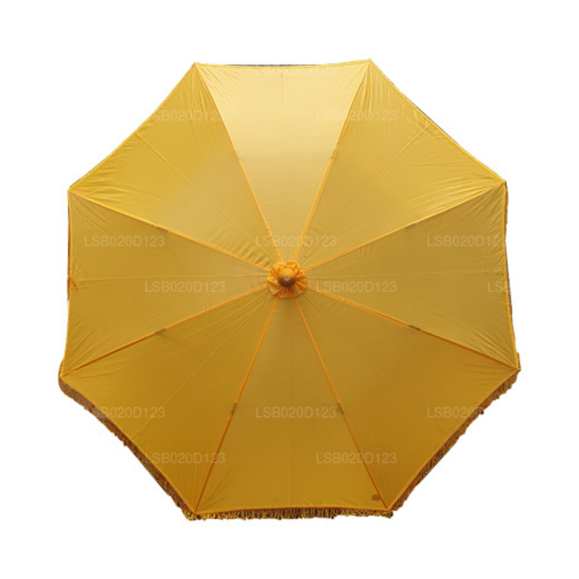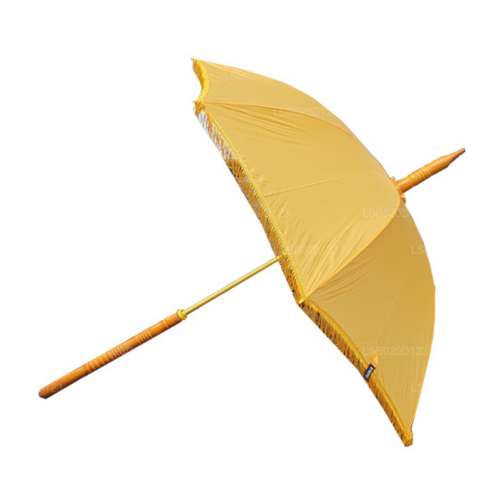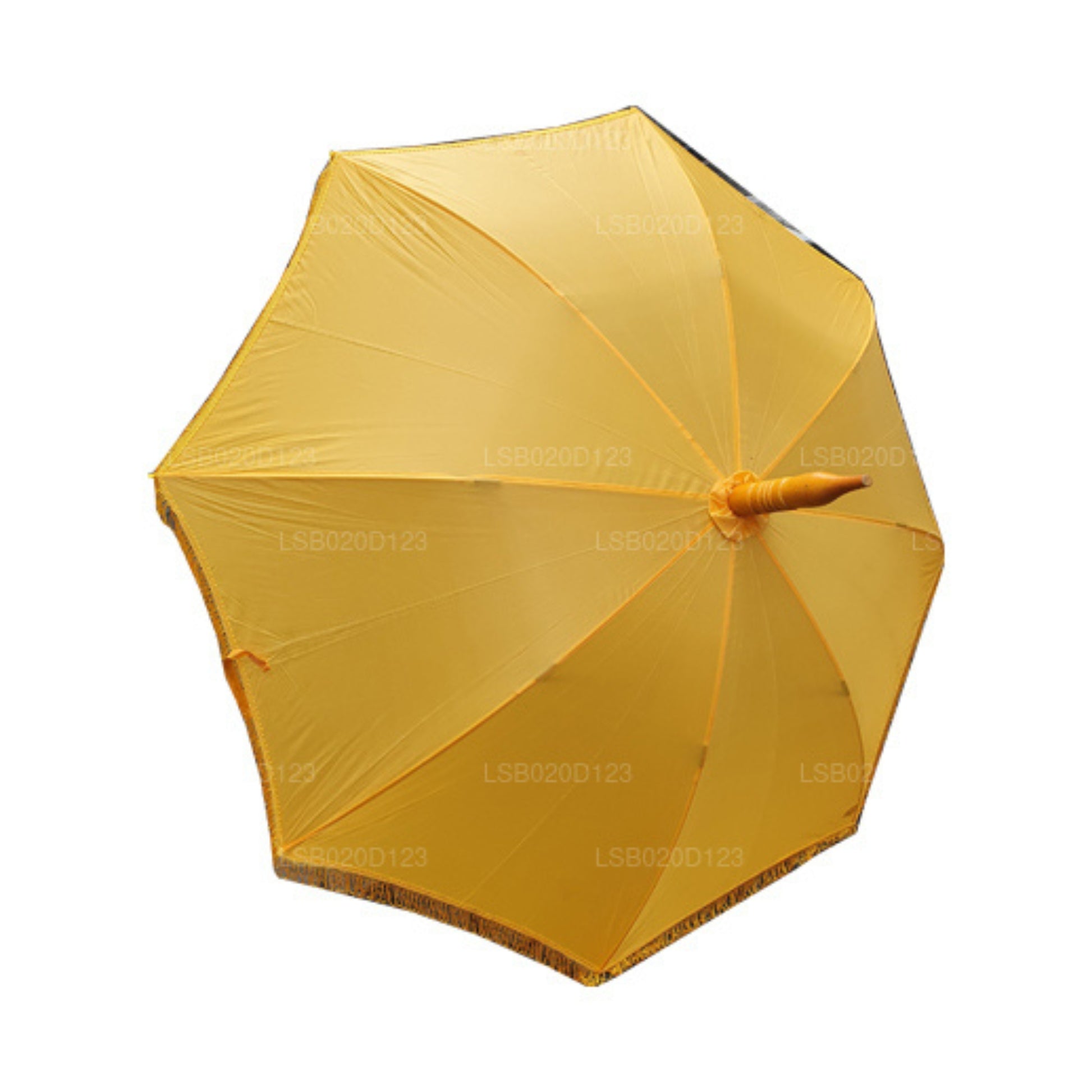 The most common purpose of an umbrella is to shade people from the sun or rain. However, there are various explanations in many cultures regarding the use of Umbrellas. The Lakpura Muthu Kuda is specifically used to act as a shield for Buddhist Monks from the various effects of nature. Simple designs are available while some are embroidered with triple pagodas.