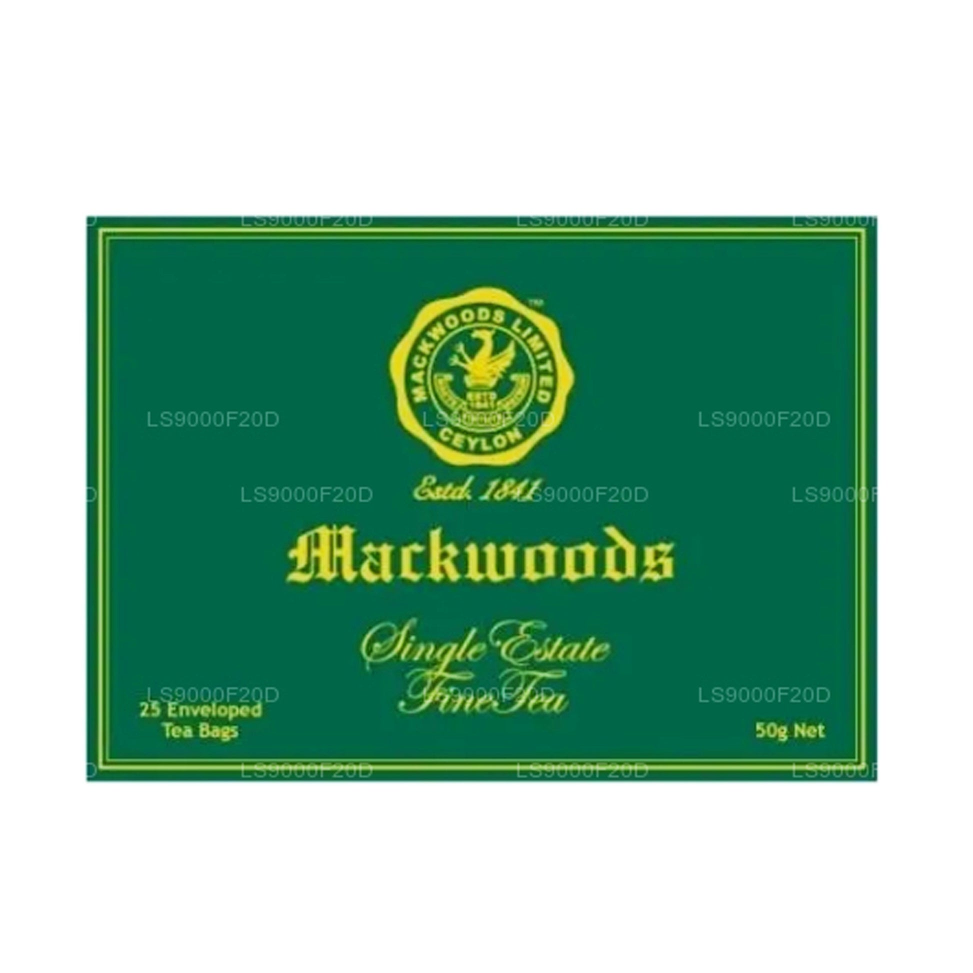 (SKU: LS9000F20D) Mackwoods Single Estate tea bags have been specially made for those who desire fine quality, unblended tea, with the convenience of a modern lifestyle. These teas are hand plucked, unblended, Single Estate teas brought to you garden fresh from Mackwoods high grown estates, some of Sri Lanka’s finest tea gardens, situated approximately 2000 metres above sea level in the misty hills of Nuwara-Eliya.