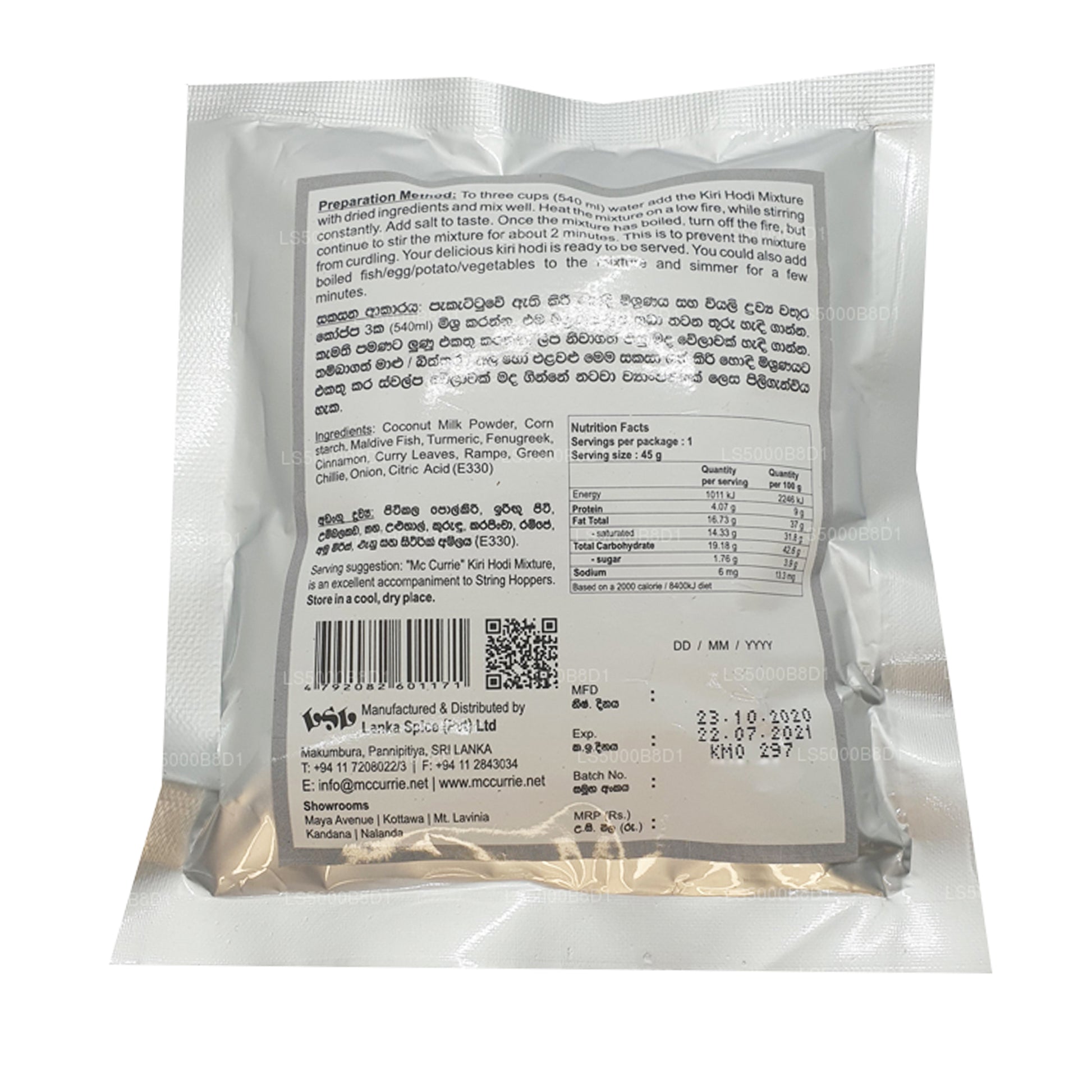 (SKU: LS5000B8D1) Kiri Hodi is a popular and traditional coconut milk gravy from Sri Lanka. Made using a few basic ingredients, this dish is traditionally served hot alongside coconut sambol (pol sambola) or string hoppers (idiyappam). Vegetables and fish can be added to the sauce to make a more substantial curry dish.