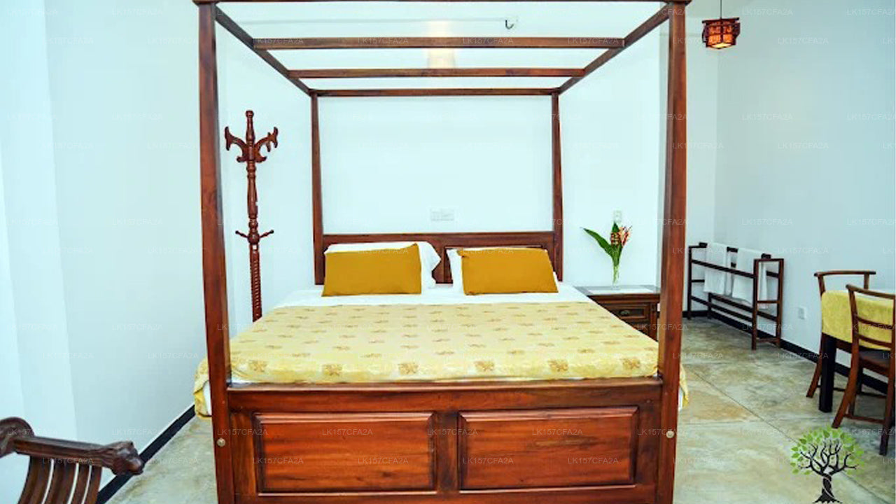 The villa features four spacious, air-conditioned bedrooms, each equipped with comfortable beds and en-suite bathrooms. The rooms are designed with a blend of modern and traditional Sri Lankan aesthetics, offering a cozy and inviting atmosphere.