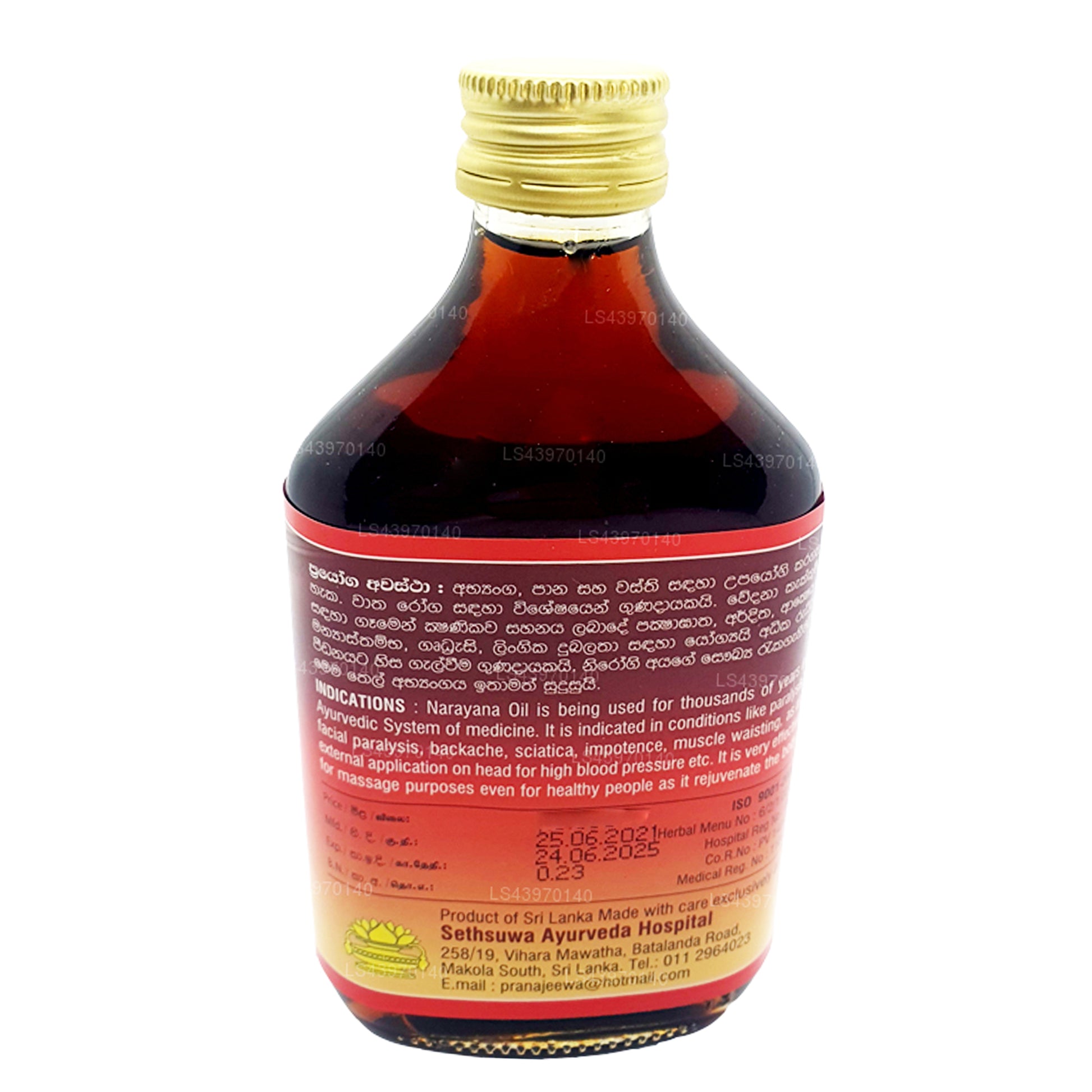 Sethsuwa Maha Narayana Thailaya is a renowned Ayurvedic oil that has been trusted for centuries in Sri Lankan traditional medicine. This potent herbal formulation is crafted with a blend of carefully selected natural ingredients, including Gotu Kola, Ceylon Cinnamon, Garlic, and Sweet Flag, known for their powerful healing and rejuvenating properties.