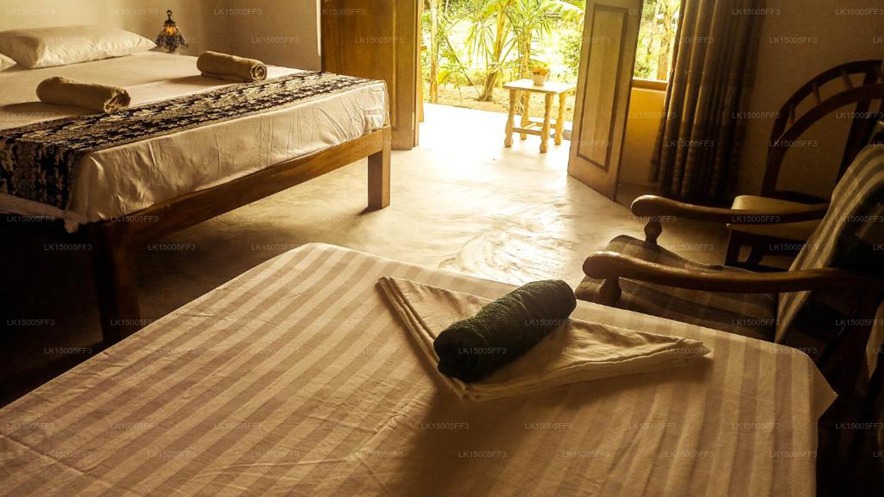 (SKU: LK15005FF3) Nestled in the serene locale of Udupila, Mirissa, The Dale Mirissa is a sustainable haven surrounded by lush greenery. A mere 10-minute walk from Mirissa Beach, this tranquil guest house offers air-conditioned accommodations with private entrances, featuring outdoor furniture and modern amenities. The on-site family-friendly restaurant serves delectable meals for dinner, lunch, and high tea. With a commitment to sustainability, the property provides free parking, WiFi, and an array of services, including yoga classes, bike and car hire. The host's 25 years of tourism expertise ensures a warm and knowledgeable experience, making The Dale Mirissa an ideal retreat.