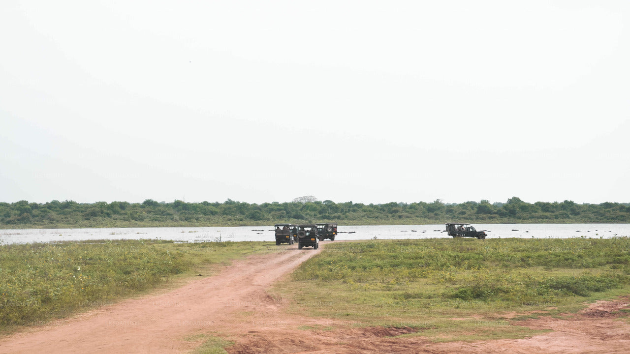 We will first journey into the savanna grasslands of the park in the hopes of seeing the Sri Lankan Elephant, Golden Jackal, Spotted Deer, Wild Water Buffalo, Hare, Mongoose, Bandicoot while also keeping an eye out for Crocodiles in the wetland areas and also birds such as the Sea Eagle, Fishing Eagle, Brahminy Kite, Crested Serpent Eagle, Sri Lankan Jungle Fowl, Spur Fowl, Green Pigeon, Sri Lanka Grey Hornbill, Spot-billed Pelican, Little Cormorant, Green Bee-eater, Crested Tree Swift in and among the trees.