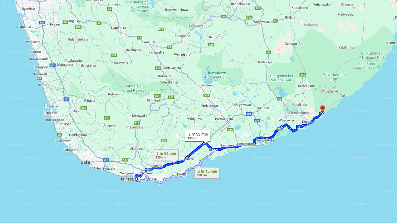 Offering a chance to explore one of Sri Lanka's premier wildlife sanctuaries. The journey begins with a scenic drive from Mirissa to Yala, where you'll embark on an unforgettable jeep safari. Discover the park's rich biodiversity, spotting elephants, leopards, sloth bears, and a variety of bird species in their natural habitat. The park's diverse landscapes, from dense forests to open grasslands, provide stunning views and excellent photo opportunities. This full-day adventure promises thrilling wildlife encounters and a deep connection with nature.